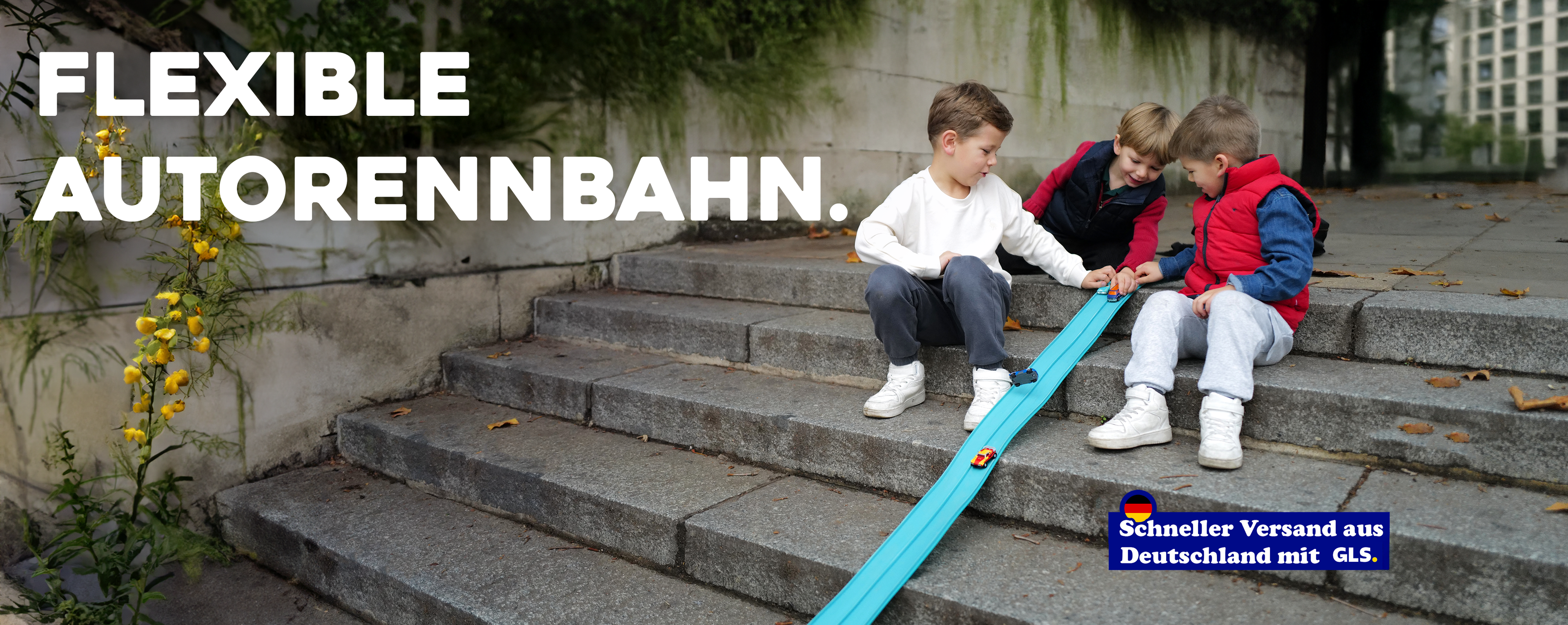 Zu Hause oder draußen: Befestigen Sie Super Circuit®, starten Sie ein oder mehrere Autos und schon kann das große Rennen beginnen! Ob alleine oder mit mehreren, gestalten Sie Hügel, Tunnel und Loopings mit Alltagsgegenständen.
